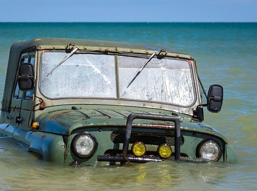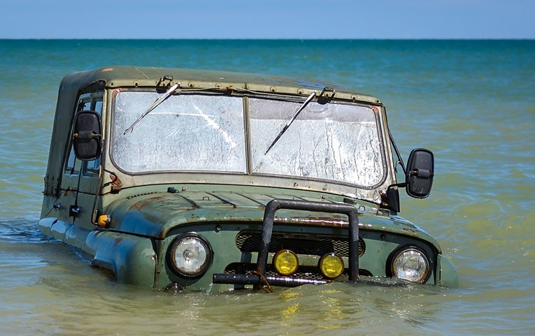 Ako je ušlo puno vode, automobil zaranja. Ako je motor naprijed, automobil će prvo potonuti preko pramčanog dijela. Ako je motor straga, situacija je, jasno, obratna.
