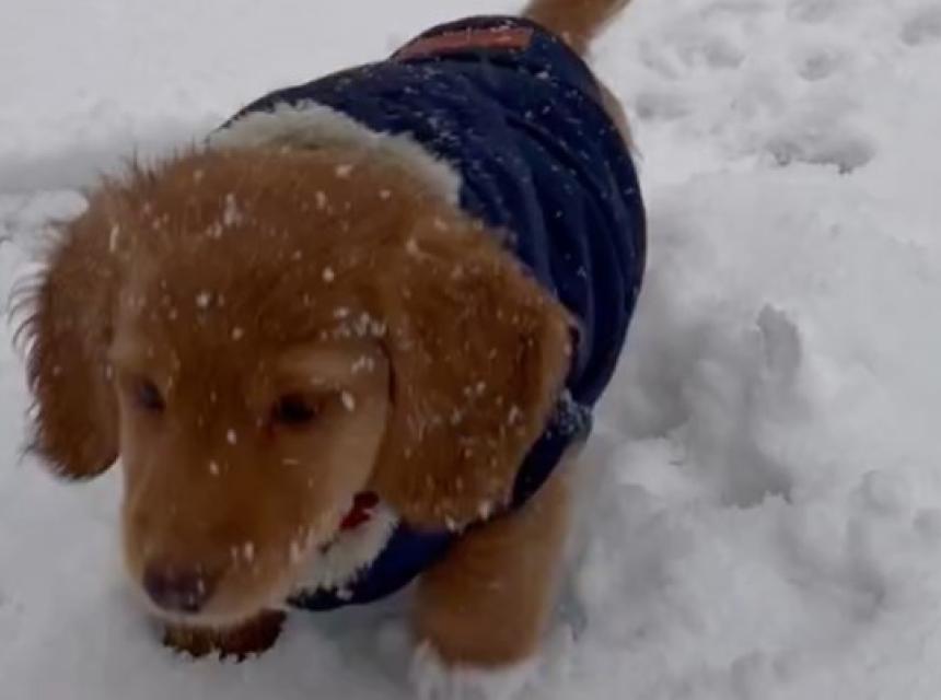 Vlasnica ju je obukla u toplu jaknu i izvela van. Sophie je odmah krenula znatiželjno istraživati snijeg. U njega je prvo gurnula svoju njušku kako bi provjerila kakvog je okusa, a potom je počela poskakivati i radosno mahati repom. Iako joj je hodanje po snijegu zadalo malo problema zbog njezinih kratkih nogu, oduševljenje nije mogla sakriti.