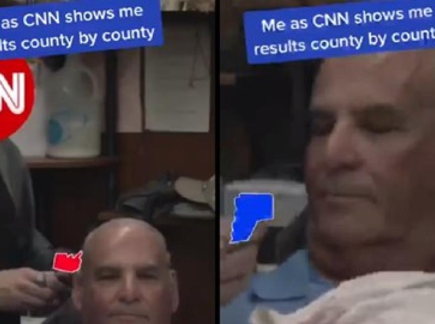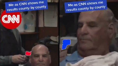 Neke je CNN-ovo brojanje glasova državu po državu podsjetilo na scenu iz Borata u kojoj on šiša muškarca da zaradi za povećanje grudi svoje kćeri.