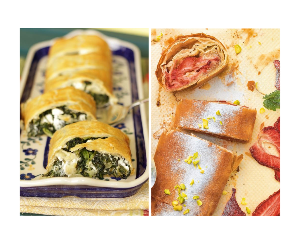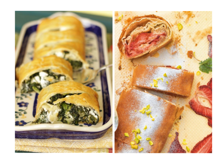 Špinat kratko blanširajte i izrežite pa ocijedite i pomiješajte s feta sirom. Podijelite štrudlu na četiri dijela pa razvucite i namažite filom. Zarolajte pa poredajte u tepsiju. Pecite u rerni zagrijanoj na 200 Celzijevih stepeni 30-ak minuta.