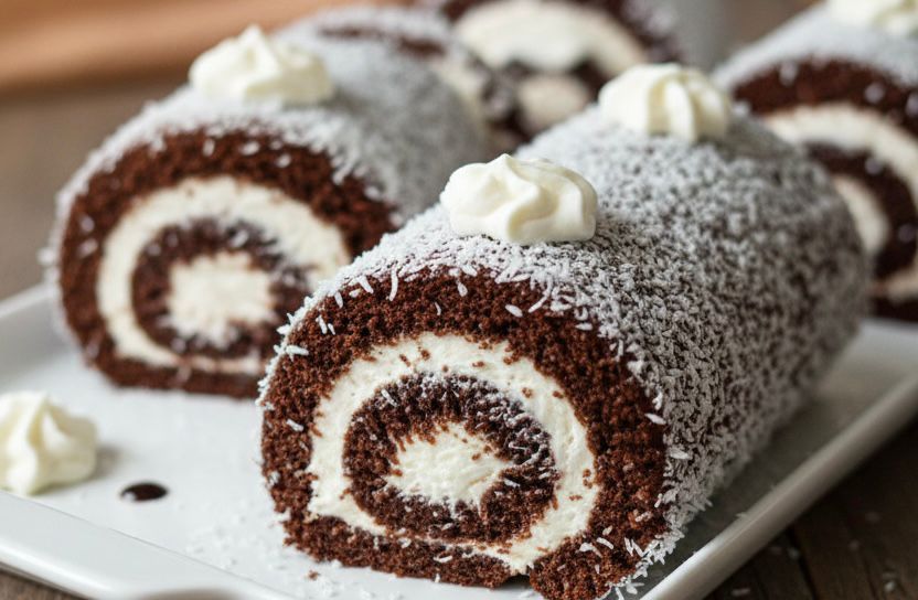 Kada se fil stegne, premažite ga umućenom slatkom pavlakom. Kolač možete sjeći odmah, ali će biti još ljepši ako odstoji bar dva sata u frižideru. Isijecite na trake, pažljivo urolajte i poslužite.