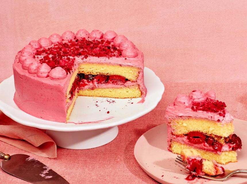 Ohlađeni biskvit premažite kremom. Na kremu složite plazma kekse umočene u mlijeko. Na kekse dolazi opet sloj kreme i stavite drugi sloj biskvita. Premažite ostatkom kreme i ukrasite šlagom i malinama.