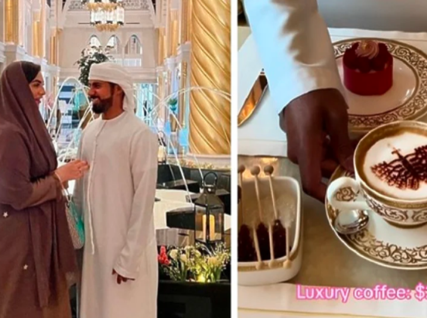 Pohvalila se ispijanjem kave od 186 eura u luksuznom restoranu s pozlaćenim tanjurima i šoljama, a zatim je pokazala dizajnerske vrećice te objavila da je njezin suprug potrošio 50.000 dolara na njezin luksuzni šoping.
