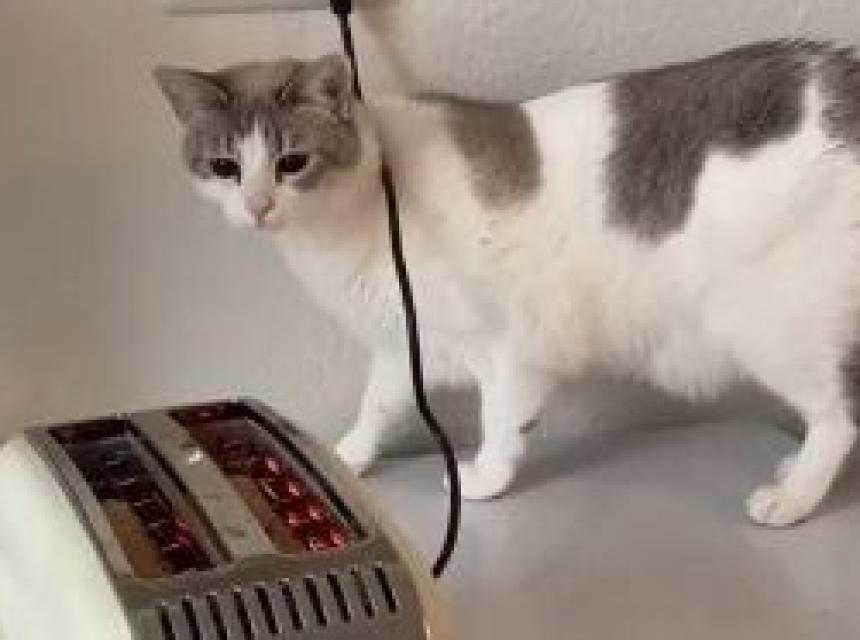 Jedna vlasnica mačke snimila je prvo susret svoje ljubimice s tosterom i nasmijala mnoge, a neke je i zabrinula. Najprije je mačka gledala toster iznenađeno, a kada su iz njega izletjela dva parčeta hljeba, pala je s kuhinjskog pulta od šoka.
