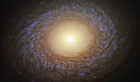 Krakovi koji se vrte oko sablasno poraznog središta NGC 2775 izgledaju paperjasto i pahuljasto zbog tamnih linija prašine i naleta plinovitih oblaka. Unutar njih sjaji na milijune svijetlih, mladih i plavih zvijezda za koje se vjeruje da pokreću stvaranje novih zvijezda u obližnjim oblacima plina.