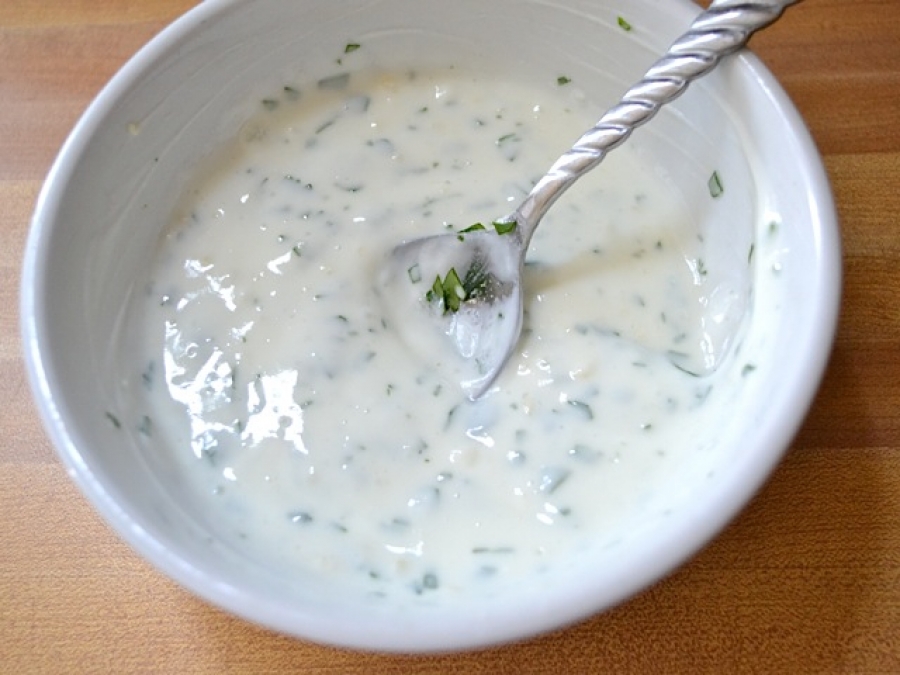 5. Ručno umiješajte kiselu pavlaku, bosiljak i peršun.