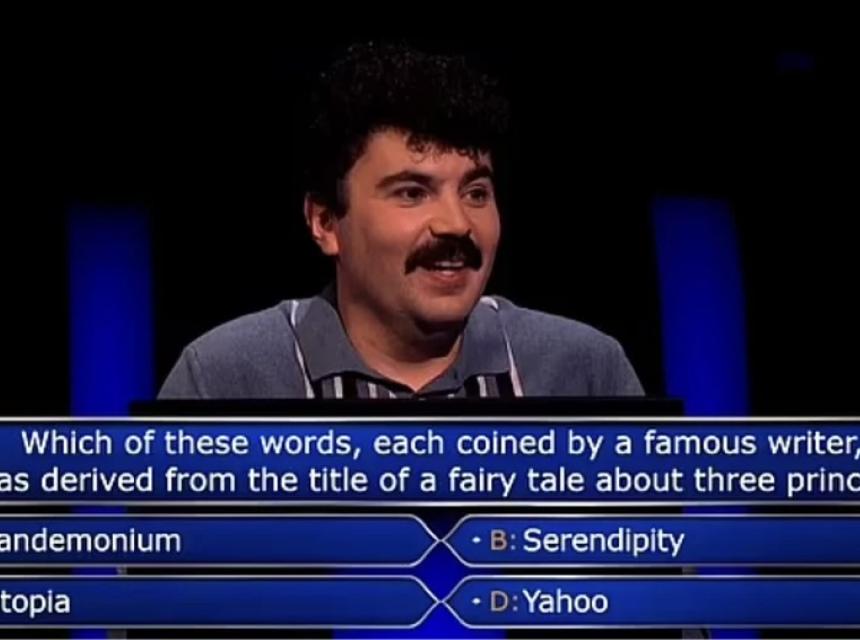 Međutim, on je odlučio riskirati i odabrao opciju pod d) Yahoo, što mu je bila prva pomisao, ali se ispostavilo da je tačan odgovor bio b) Serendipity.