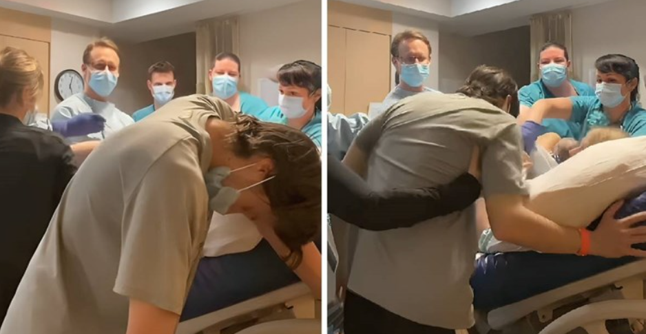 On je odlučio biti uz majku svog djeteta, ali nije ni sanjao da će zbog toga pasti u nesvijest. U videu koji je Stewart objavila, njezin partner naginje se nad bolnički krevet u kojem ona leži s tek rođenom bebom na prsima, a onda pada u nesvijest.
