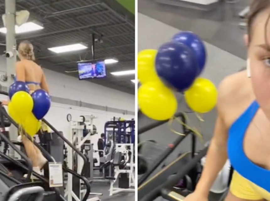TIKTOKERICA ukrajinskog podrijetla s američkom adresom Olena Sadovska 26. ožujka objavila je fitness izazov. Kako bi podigla svijest o ratu u Ukrajini i založila se za zatvaranje neba nad Ukrajinom, odlučila je u lokalnoj teretani hodati 24 sata po pokretnim stepenicama.