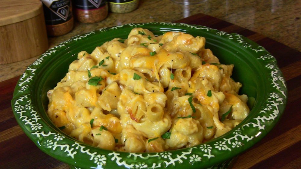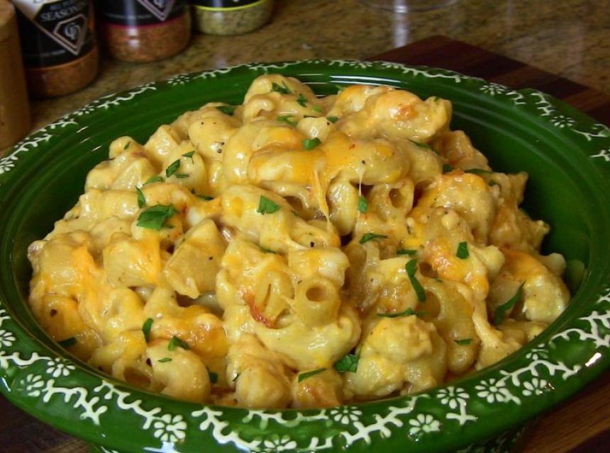 2. Skuhane makarone ocjedite i stavite u pleh. Prelijte pripremljenim prelivom i promešajte kašikom.