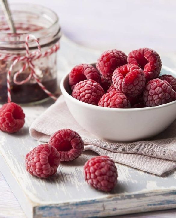 Pripremite sok od malina. Maline prelijte vodom i stavite kuhati. Usitnite u blenderu te procijedite i ohladite.