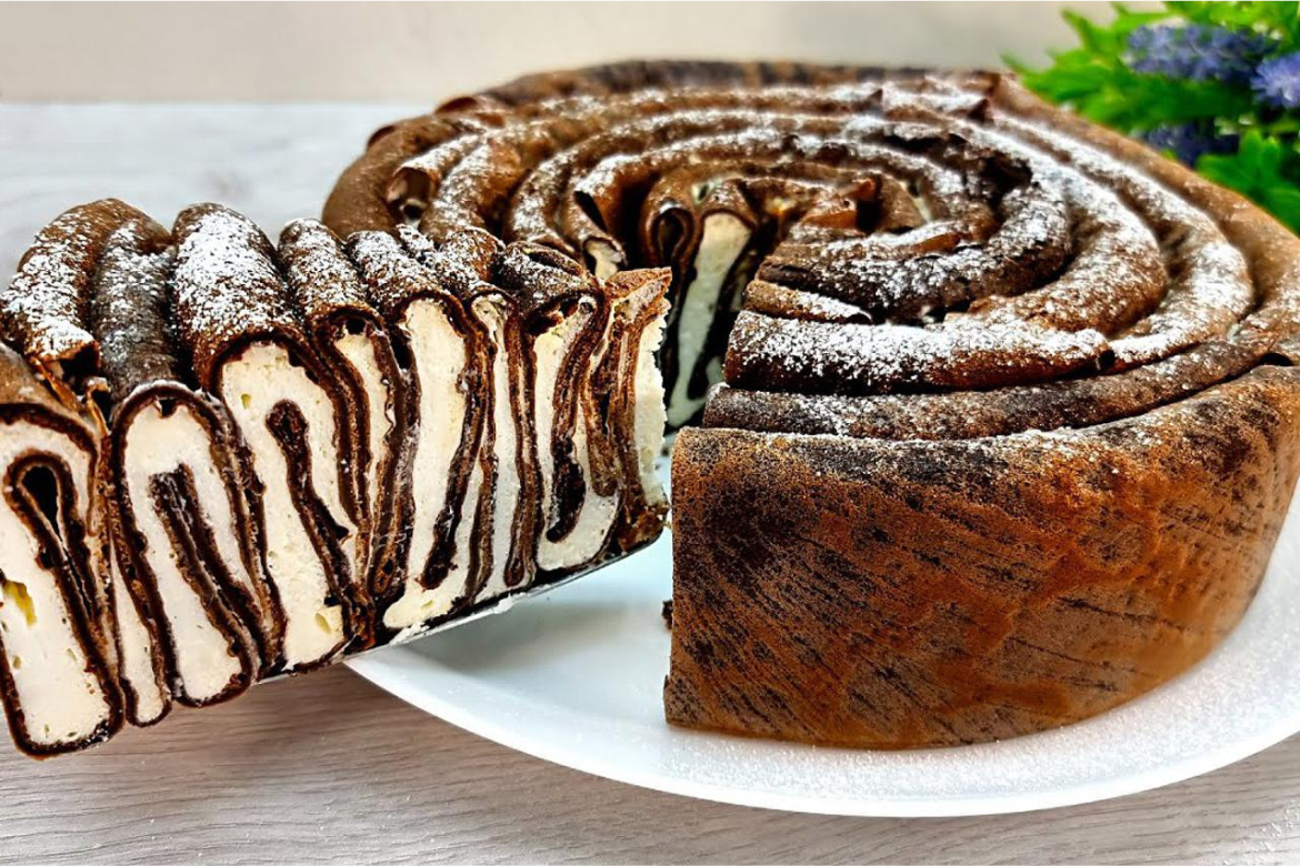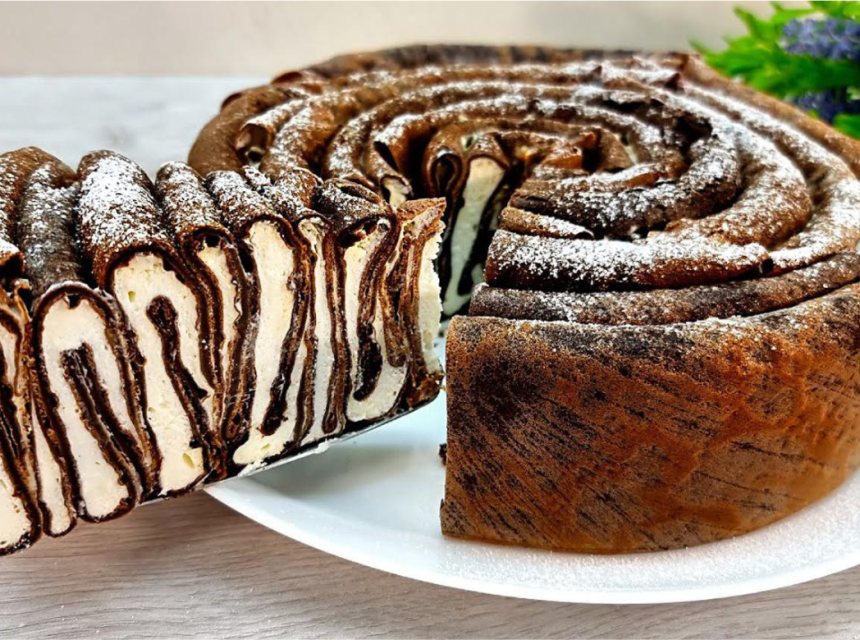 Oprezno namotaj tri palačinke u nizu. Potom svaku palačinku ‘lijepi’ na kolut tako da slažeš jednu po jednu s premazanim dijelom i svaki put dobro pritisni.