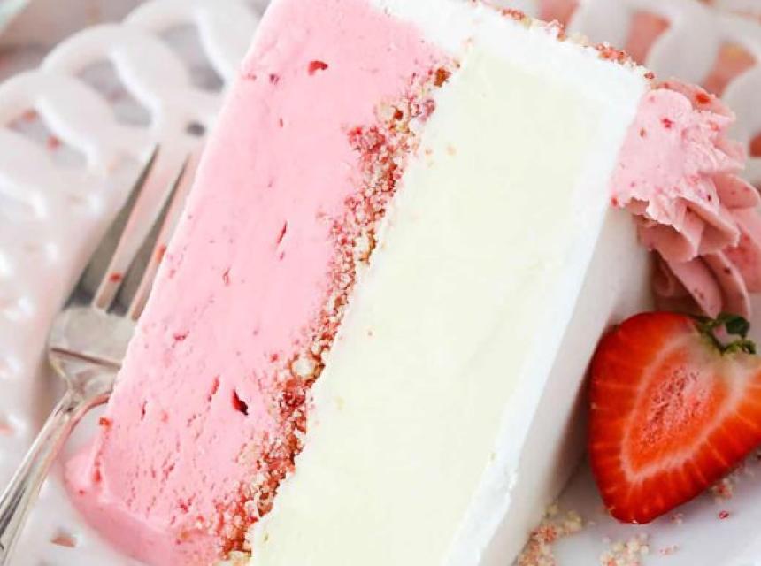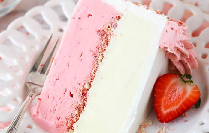 Sladoled stavite u zdjelu od miksera i tucite nastavkom s lopaticom dok malo ne omekša, oko 2 minute. Dodajte jagode i miješajte dok sladoled ne postane ružičast, još minutu. Prebacite u ohlađenu tepsiju i rasporedite da se površina zagladi. Zamrznite dok se ne stegne, 2 sata ili preko noći.