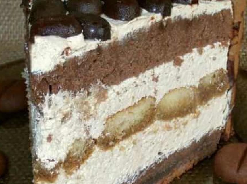 Nanesite pola krema, pa umačite piškote u skuvanu kafu i redjajte red preko krema, stavite drugi deo krema, pa drugu koru i odgore opet zalijte sirupom.