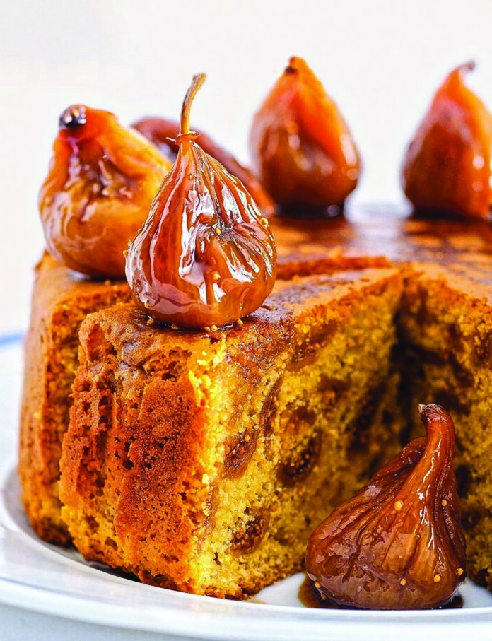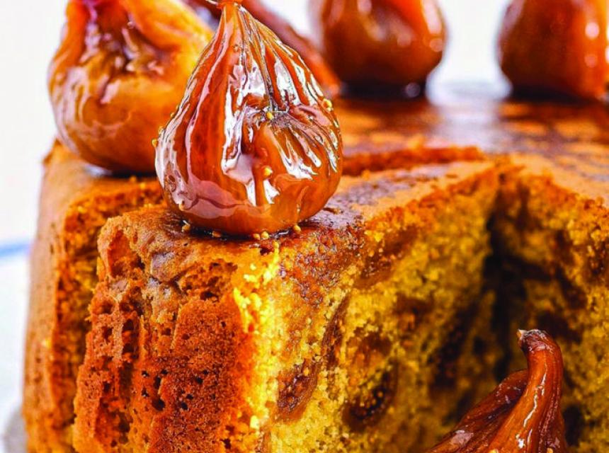 PRIPREMA: Pjenasto umutiti žumanca sa šećerom, te polako dodavati vruće mlijeko uz neprestano miješanje. Prebaciti u šerpu, dodati brašno uz mućenje žicom, te kuhati minut-dva na laganoj vatri (paziti da ne bude grudvica) i presuti u zdjelu. Pola smokava izrezati, pomiješati s dobivenom smjesom, te usuti u manji kalup prekriven papirom za pečenje i peći 40 minuta na 180 stepeni. Izvaditi iz kalupa i ohladiti. U 2 dl vode staviti smeđi šećer, cijele smokve, konjak i kuhati oko 20 minuta dok tekućina ne postane gust sirup. Mlakim sirupom preliti tortu, izrezati i poslužiti.
