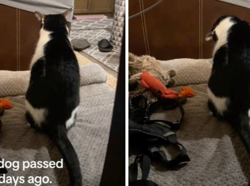 Snimka, koja je skupila više od četiri milijuna pregleda, prikazuje trenutak kada je njezin mačak Stache shvatio da je njegov najbolji prijatelj, pas Barney, uginuo. Stache je sjeo na Barneyjev krevet četiri dana nakon njegove smrti.