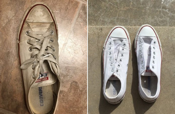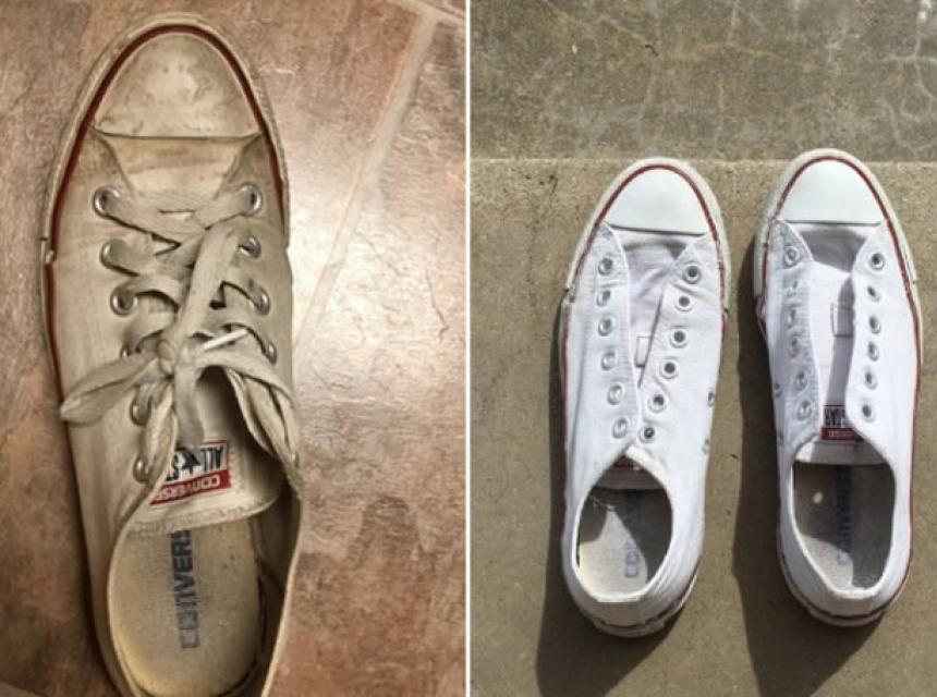 Sarah je podijelila fotografiju na svom Twitteru, uporedivši patike prije i posle pranja, a potom je otkrila kako je uspjela da ih izbijeli.