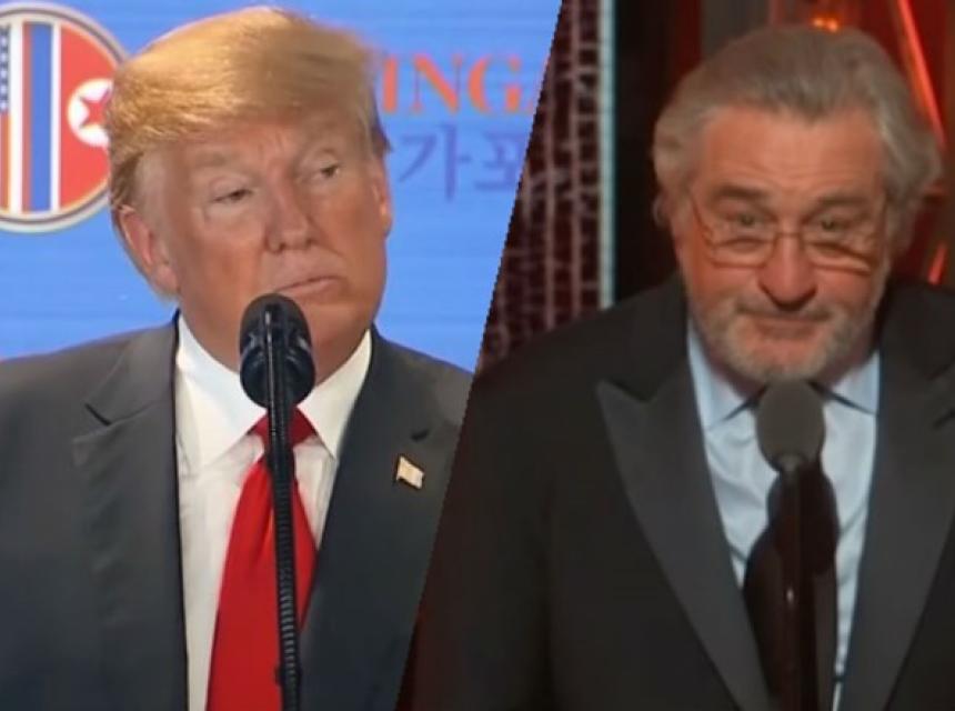 "Robert De Niro, osoba s veoma niskim IQ-om, primio je previše udarac od pravih boksača u filmovima. Gledao sam ga sinoć i čini mi se da ne razmišlja dobro od svih tih udaraca. Čini mi se da on ne shvaća da ekonomija nikad nije bila u boljem stanju, da razina zaposlenosti nikad nije bila viša te da se brojne kompanije vraćaju u našu zemlju. Probudi se, Punchy", napisao je Trump.