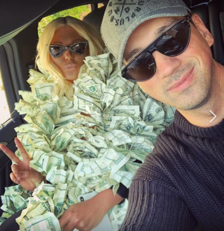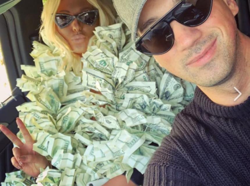 Poznata pjevačica Jelena Karleuša pozirala je ogrnuta dolarima u društvu svog dugogodišnjeg prijatelja i menadžera Zorana Birtaševića.