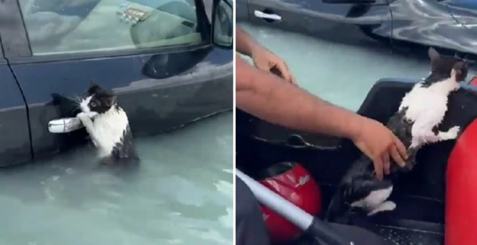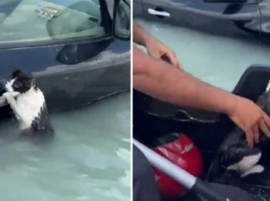 SPASILAČKE ekipe u Dubaiju spasile su mačku koja se svim snagama držala za vrata jednog automobila nakon što su grad zadesile velike poplave.