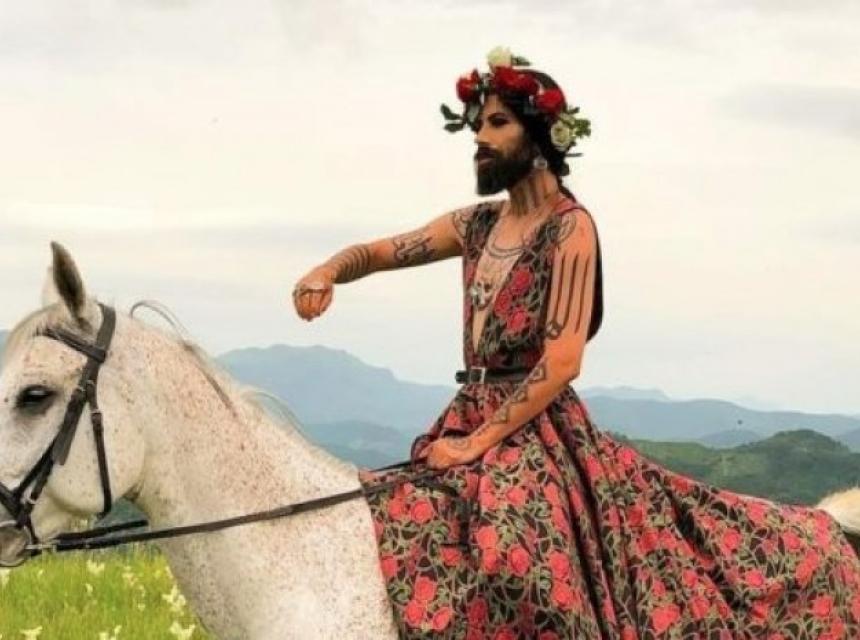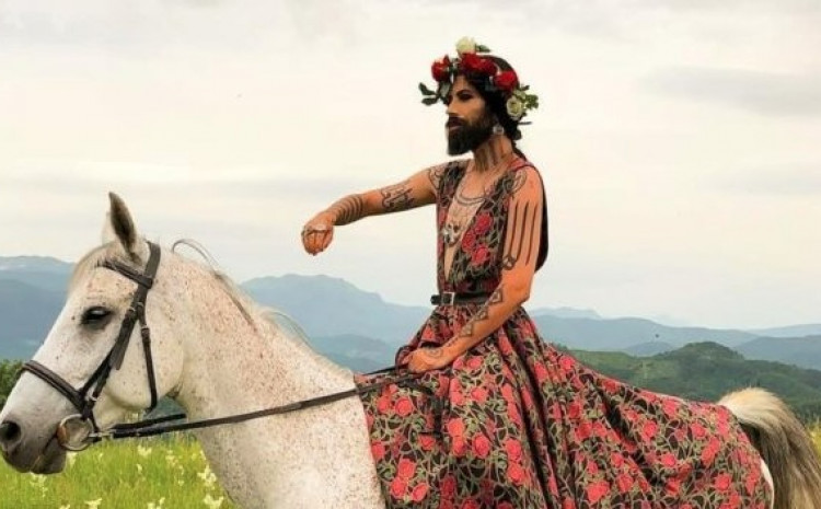 Vrećo je bio odjeven u jarko crvenu dugu suknju koju je uklopio sa bijelim sakoom i košuljom, a ekstravagantni šešir je samo dodao notu elegancije, ali i ekstravagancije, koja je, čini se, urođena ovom poznatom umjetniku.