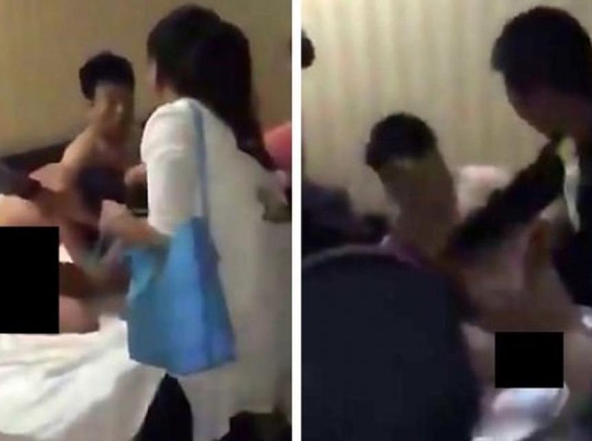 Na snimci se vidi kako ona i njeni rođaci pronašli preljubnika u krevetu hotelske sobe s drugom ženom.