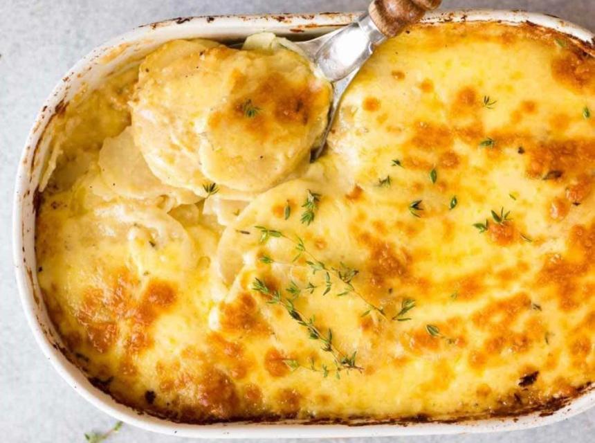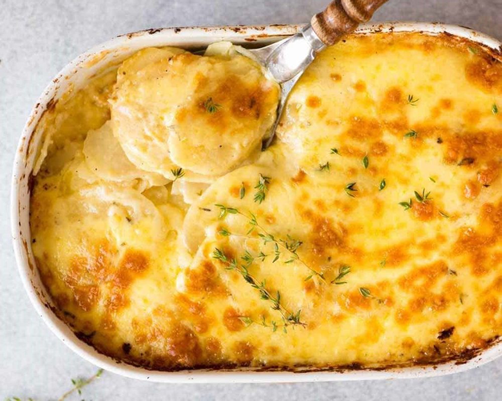 2. Kada je krompir pečen prelijte ga vrhnjem i ostavite da zavrije.