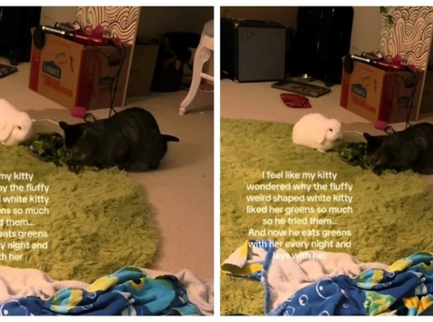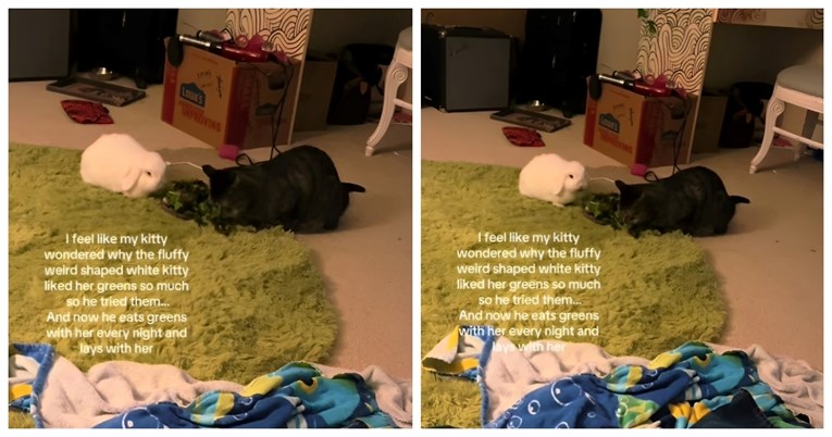 Korisnica TikToka @anjalyricc05 na svom je profilu objavila video koji je uljepšao dan milionima ljudi. Kratki video prikazuje njenog mačka i ženku kunića kako zajedno jedu večeru.