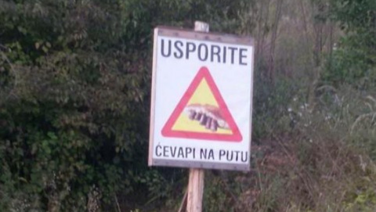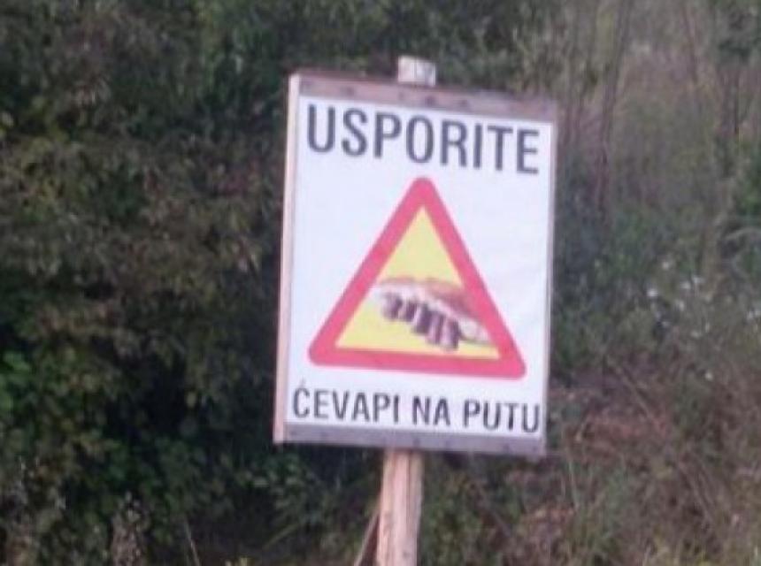 Naime, na jednom saobraćajnom znaku piše: "USPORITE Ćevapi na putu". Osim toga, na znaku se nalaze ćevapi u somunu.