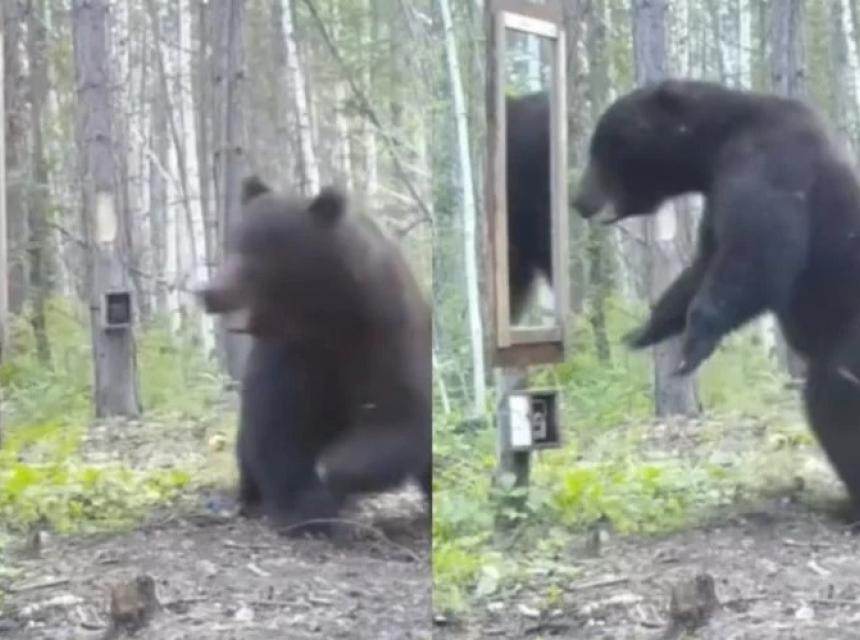 Završilo je s ogledalom na zemlji. Medo u ovom slučaju ipak nije bio spreman da vidi sebe.