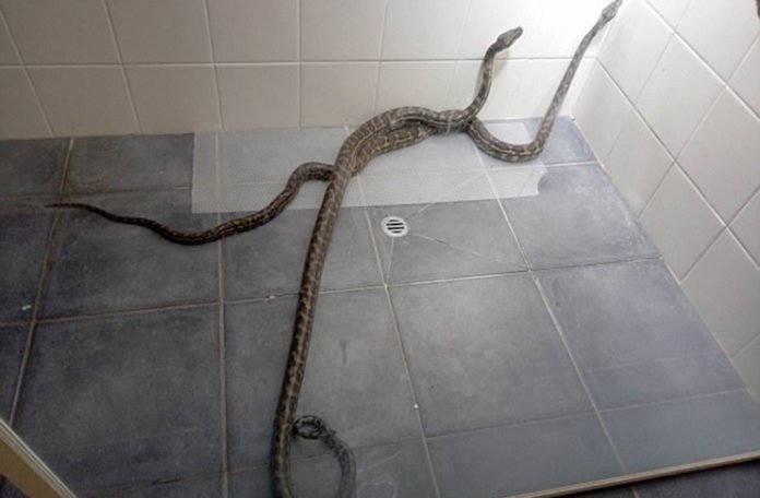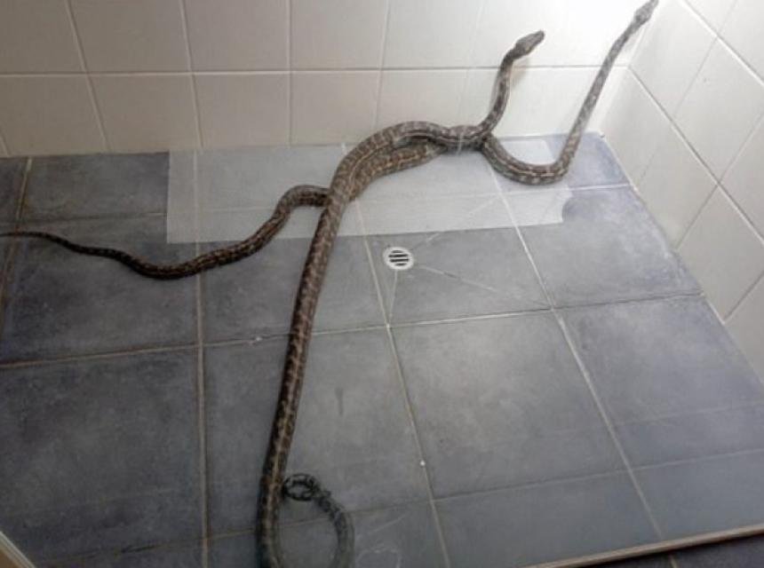Zmije je snimila u svojoj tuš kabini, a kako kaže, reptili su bili omotani jedan oko drugog repom i uopšte nisu na nju obraćali pažnju.