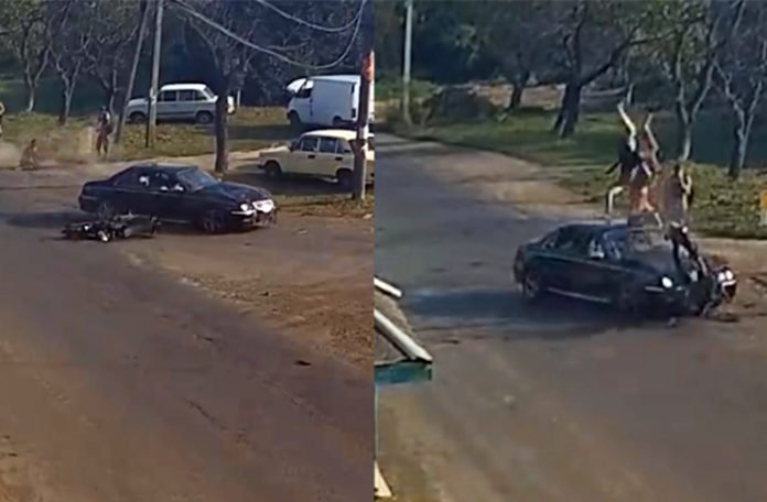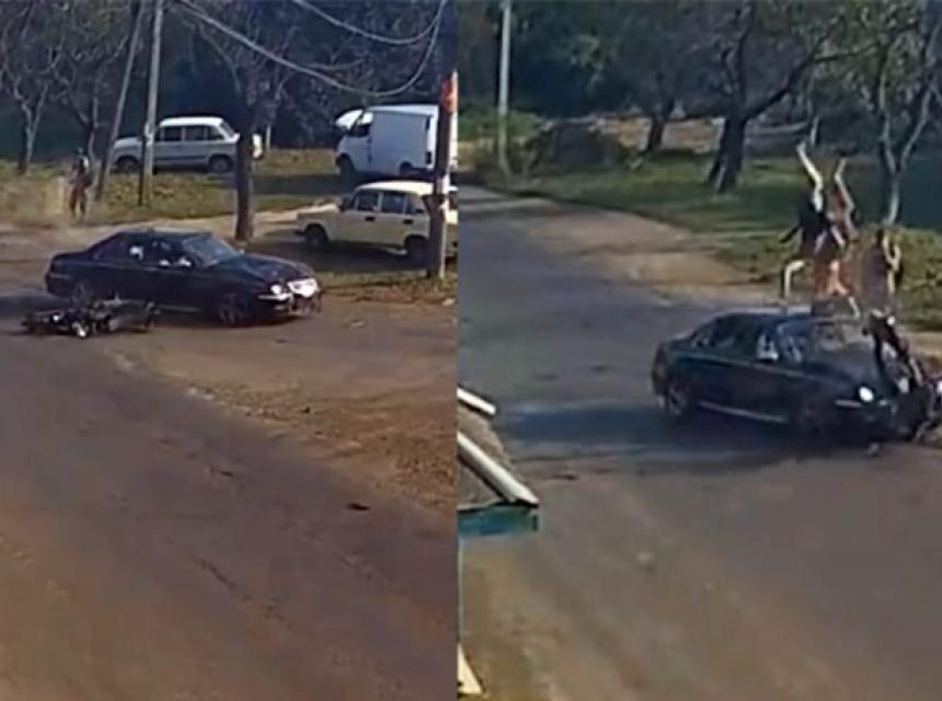 Snimak nesreće, koja se desila u ukrajinskom gradu Vynohradivu, obišao je svijet nakon što su se dva muškarca motociklom zabila u automobil koji je dolazio iz suprotnog pravca.