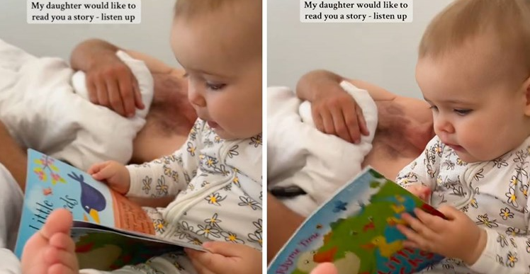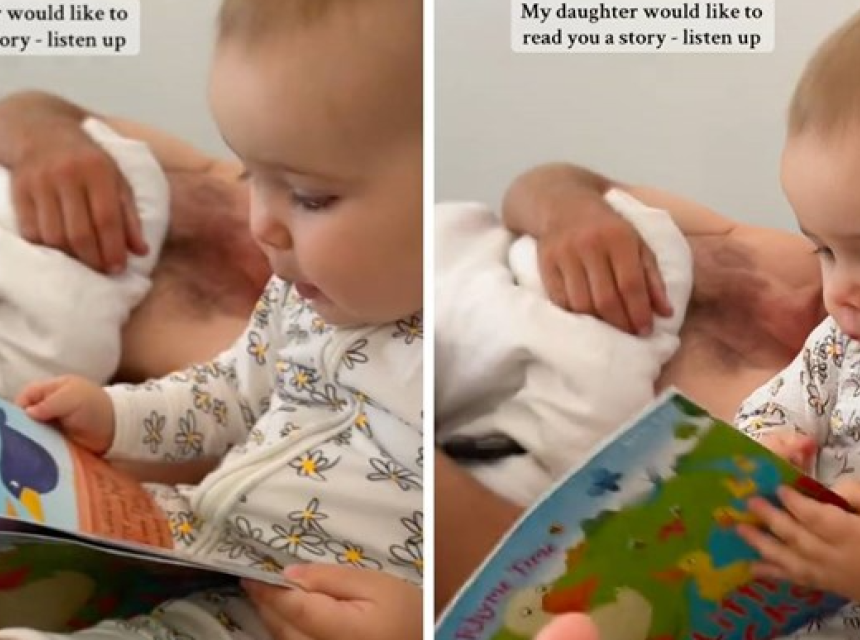 Naravno, djevojčica je još jako malena i nije počela govoriti te ne zna čitati, ali to je ne sprječava da se potrudi i svojim ponašanjem zabavlja sve oko sebe.