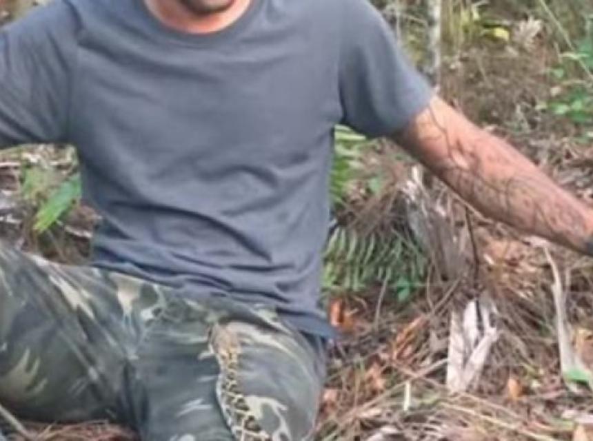 Sjeo je tačno tamo gdje je opasna dijamantna čegrtuša nakanila nastaviti put, pa se s njom doslovno zatekao oči u oči.