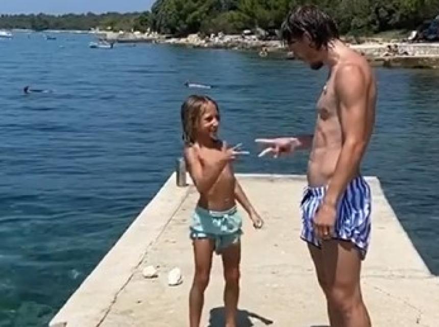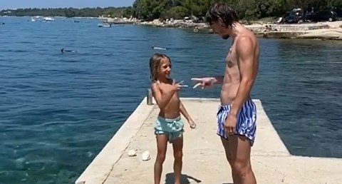 Modrić je na svom Instagramu objavio video sa svojom kćeri Emom na kojem se vidi kako igraju "škare, kamen, papir", a onda i skaču u more kako bi se rashladili.