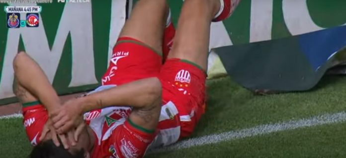 U duelu s napadačem Atlético de San Luisa, Nicolásom Ibañezom, protivnički igrač ga je odgurnuo nakon čega je pao na jednu od reklamnih cerada koje su bile na terenu iza gola.