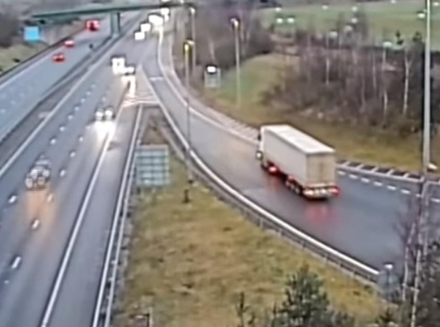 Šokantna snimka nadzornih kamera prikazuje kako se ogromnim kamionom polukružno okreće na autocesti dok deseci automobila tamo voze velikom brzinom. Na snimku se čuje i kako glasnogovornik policije kaže: “Zamislite ovo ujutro dok putujete na posao2.