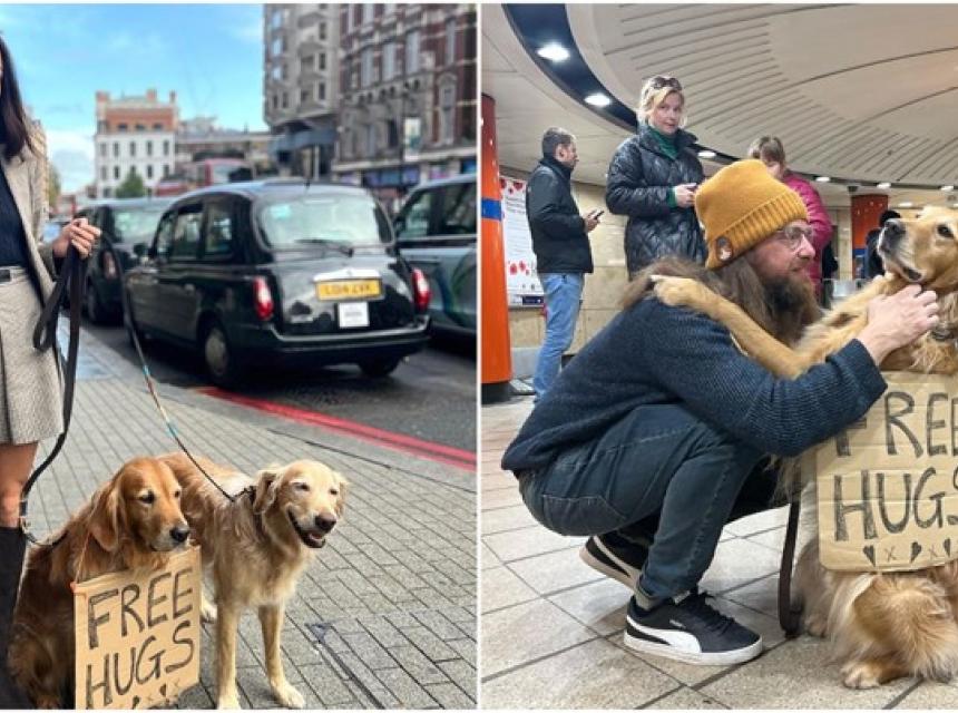 Naime, Ursula je na pse stavila natpis "Besplatni zagrljaji", a potom snimala reakcije prolaznika. Muškarci, žene, djeca i starci prilazili su Hugi i Huxleyju te su ih grlili i mazili dok su psi veselo mahali repom.