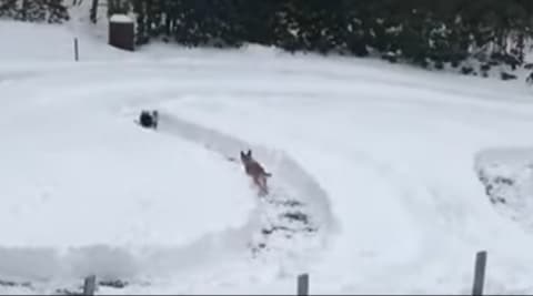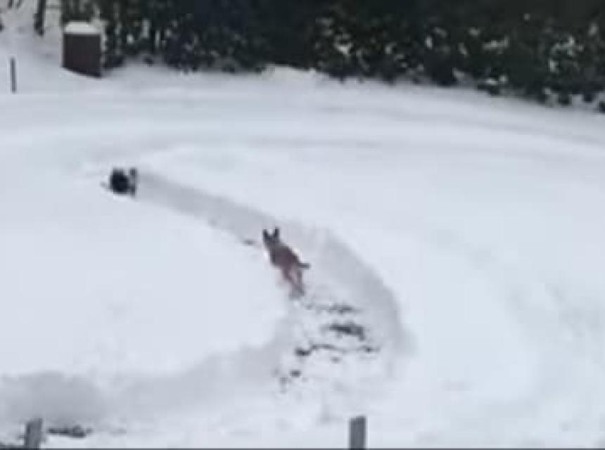 Snimka na kojoj se dva psa utrkuju na snijegu postala je hit na internetu.