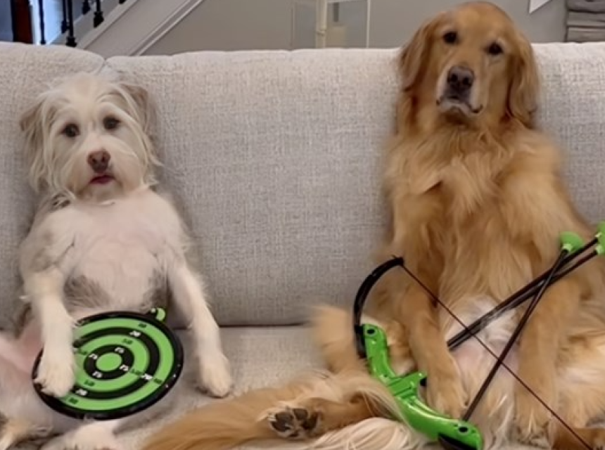 Ljetne olimpijske igre su završile, ali ljudi još uvijek gledaju reprize svojih omiljenih događaja. Čak su i zlatni retriver Teddy i njegov četveronožni brat Archie uživali gledajući igre. Nakon što su vidjeli jedno od natjecanja u streličarstvu, odlučili su i sami isprobati taj sport.
