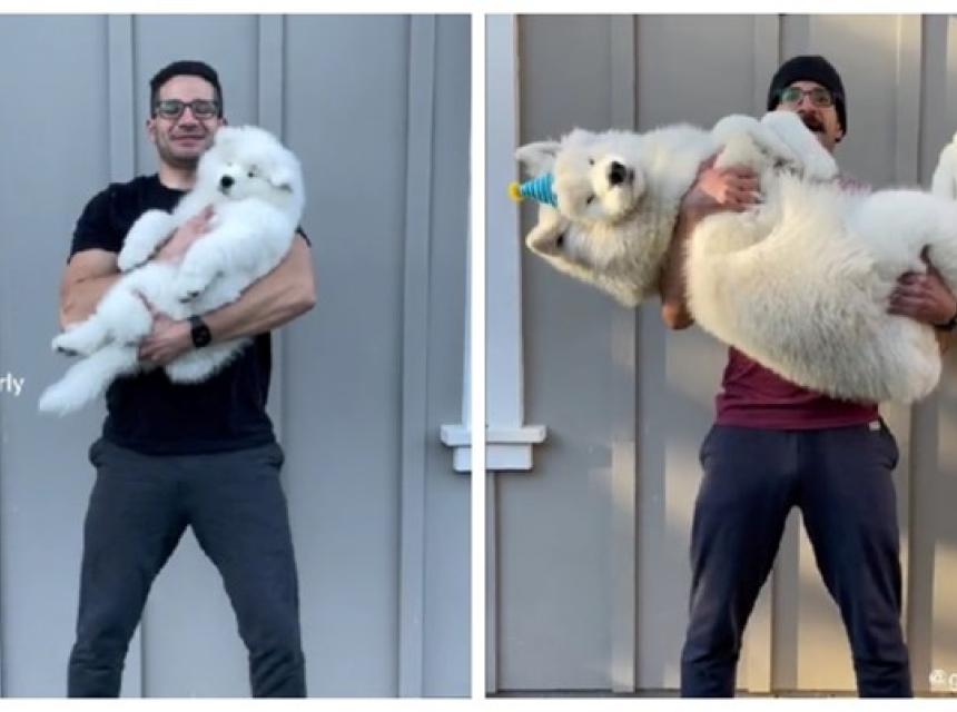 JEDAN se vlasnik dosjetio genijalne ideje i počeo snimati svojeg samojeda Onyxa kako ga nosi u naručju. Isprva maleno štene, Onyx je u samo godinu dana odrastao u pravog psa kojeg je vlasnik jedva podignuo.
