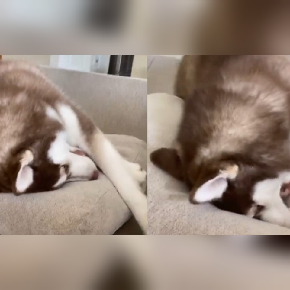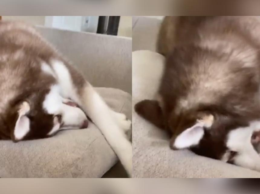 Jedan nestašni haski previše se zaigrao s vlasnikom, koji je sjedio do njega na kauču, te ga je u jednom trenutku čak počeo gristi, zbog čega mu je vlasnik očitao bukvicu.