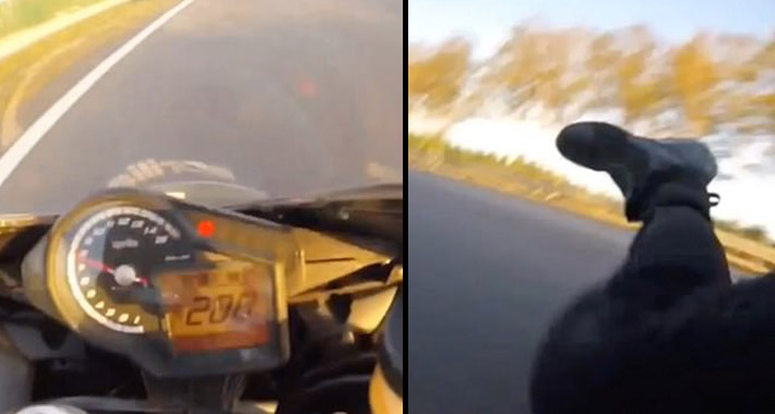 Motorista je imao kameru na kacigi, te je snimio kako juri autocestom, sve do trenutka dok se ispred njega nije “stvorio” BMW.