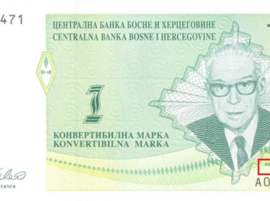 Na stranici za online prodaju Ebay ponuđena je na prodaju novčanica koju je 1998. godine u promet pustila Centralna banka BiH a za koju ponuđač traži 1.850 američkih dolara!Radi se o papirnoj novčanici apoena od jedne konvertibilne marke (1 KM), a posebna je zbog toga što je ime i prezime bh. nobelovca Ive Andrića, čiji se lik nalazi na slici, ispisano pogrešno.Naime, novčanica koja je namijenjena za Republiku Srpsku, ispisana je primarno ćiriličnim pismom, te umjesto Ivo Andrić piše Ivo Andrić.