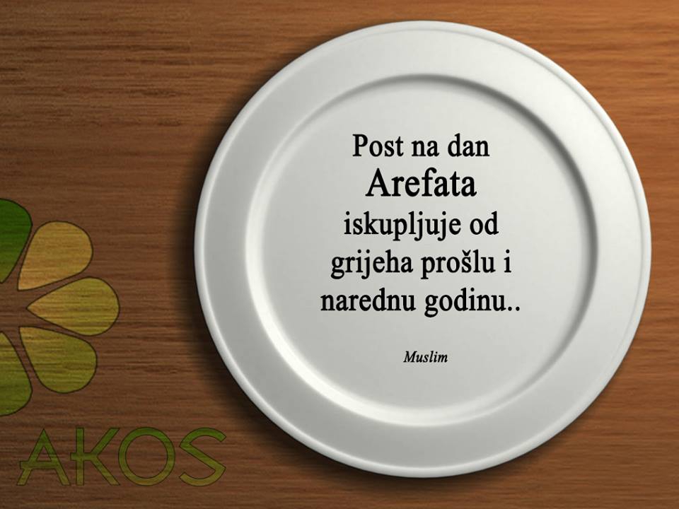 Allahov Poslanik, s.a.v.s., je u hadisu kojeg bilježi imam Muslim kazao: Post u danu Arefata, računam, da briše grijehe iz ove i prethodne godine. Ebu Davud bilježi predaju koju prenosi Ukbe b. Amir gdje je Allahov Poslanik, s.a.v.s., rekao: Dan Arefata, dan prinošenja kurbana i dani tešrika su naš blagdan, sljedbenici islama i to su dani jela i pića.