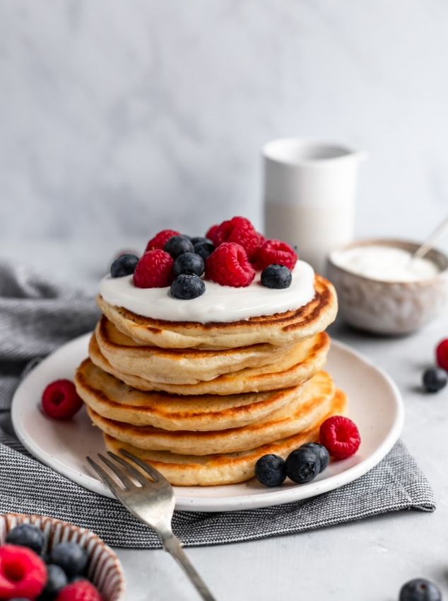 Priprema: U jednoj zdjeli pomiješajte sve suhe sastojke, a u drugoj sve tekuće. Zatim ih spojite u jednu smjesu. Zagrijte tavu za palačinke na srednje jakoj vatri i premažite je s malo putera. Pomoću kašike, nanesite tijesto na tavu. Jedna kašika daje jednu palačinkicu. Pecite palačinke s obje strane dok lagano ne porumene, otprilike 45 sekundi sa svake strane. Uživajte u njima uz omiljene preljeve i dodatke po želji.