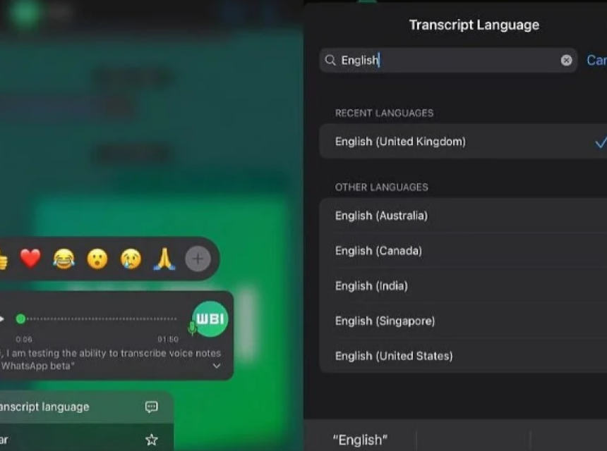 WhatsApp je počeo uvoditi funkciju transkripcije glasovnih poruka, koja će omogućiti korisnicima da pročitaju sadržaj bez potrebe da priključuju slušalice ili da je puste na zvučnike. Ovo može biti korisno u situacijama kad bi čitanje poruke bilo lakše nego slušanje.