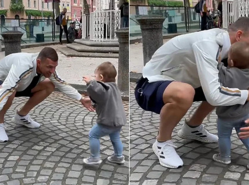 Džekina supruga Amra objavila je na Instagramu videozapis u kojem Džeko uživa u igri sa najmlađom kćerkicom Dalijom.