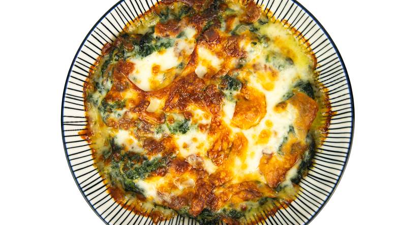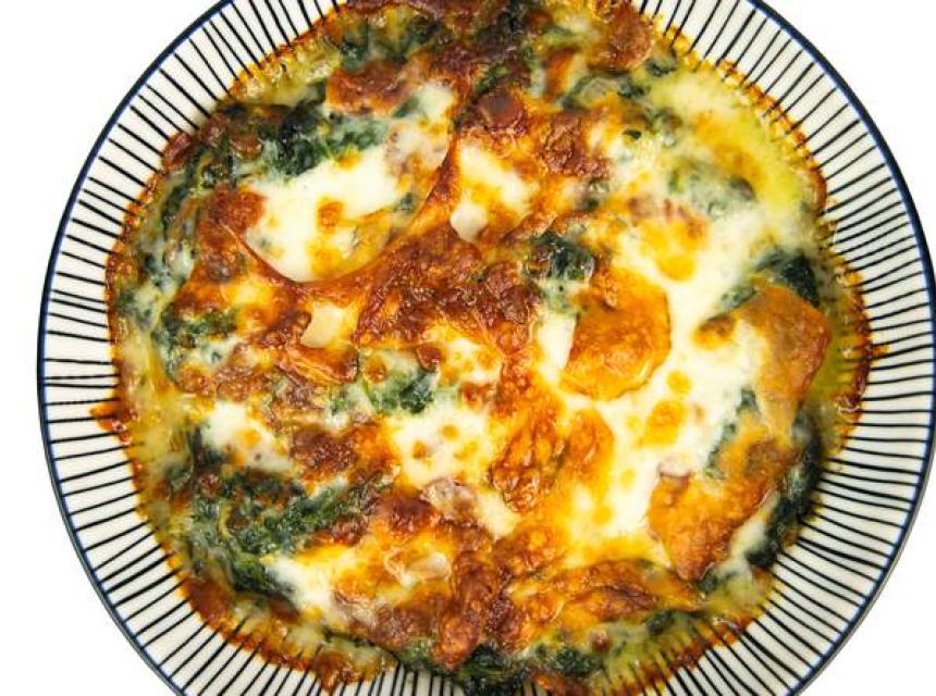 Špinat operite i kratko probarite u posoljenoj vodi. Ocijedite i rasporedite ga po dnu male vatrostalne posude koju ste premazali puterom.