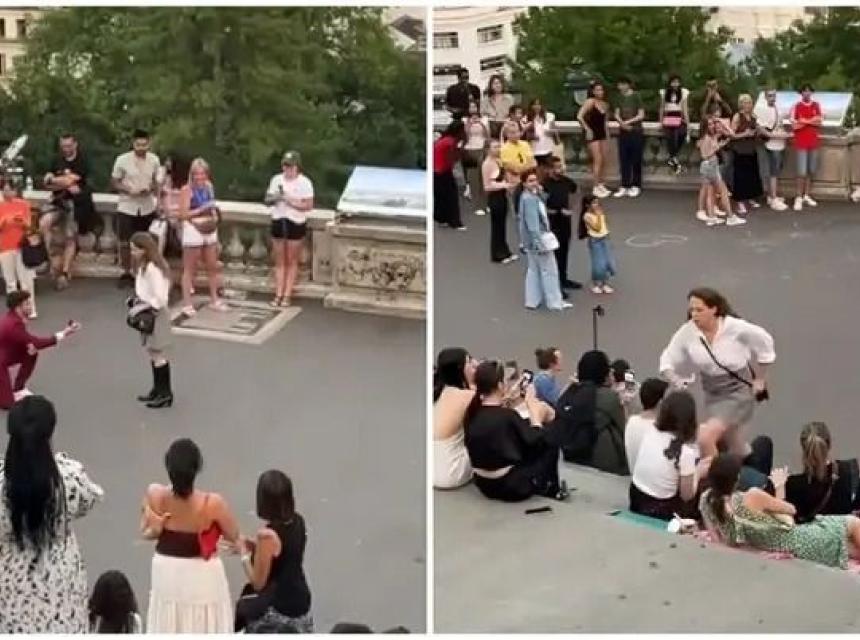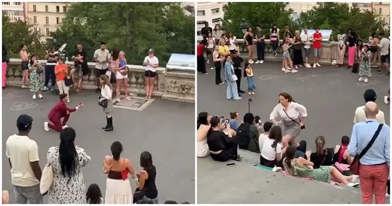 Društvenim mrežama širi se viralna snimka jedne neuspješne prosidbe kod Bazilike Sacre-Coeur u Parizu.